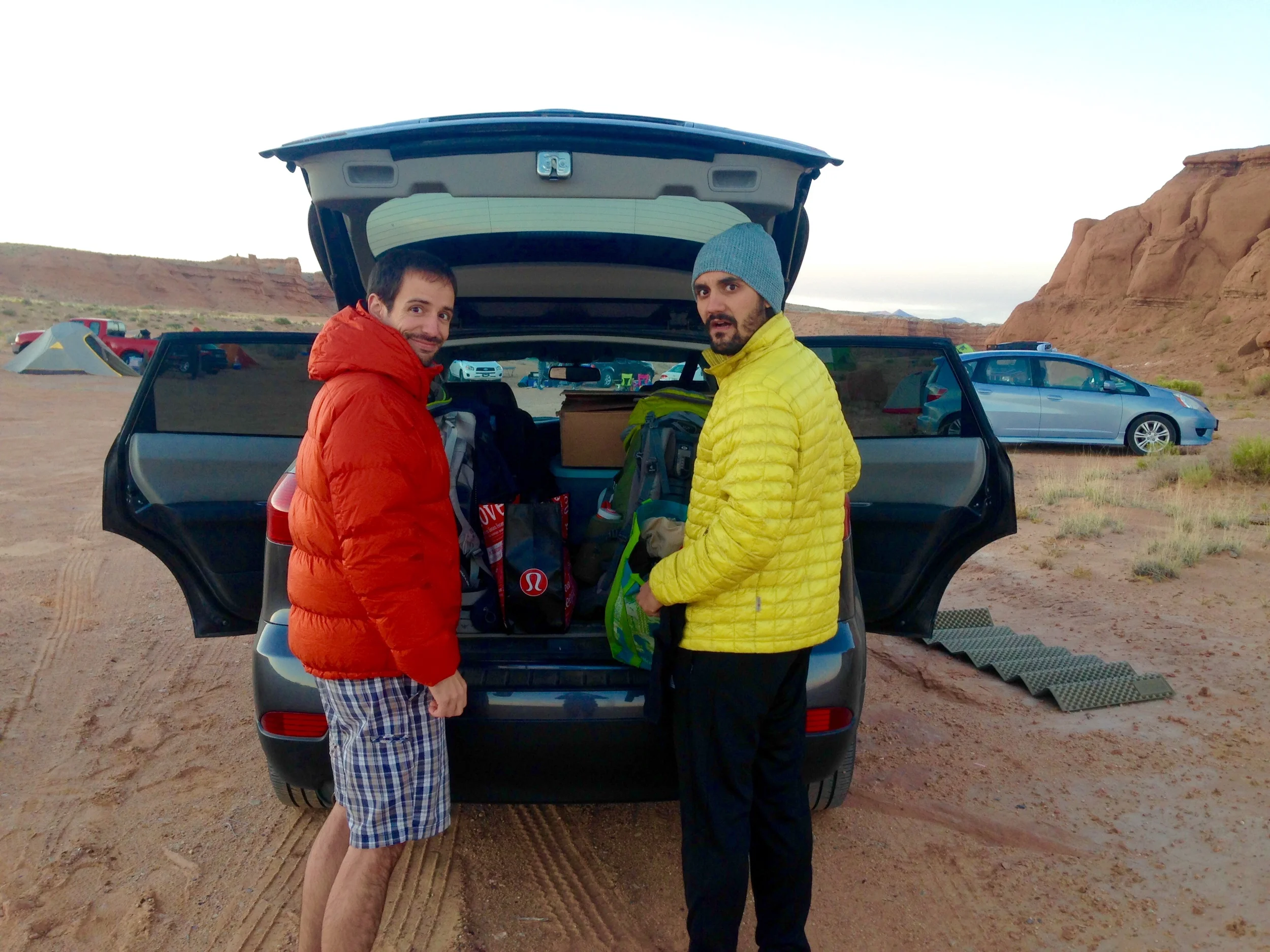 On to aid climbing. Back towards the end of October I got to go with Michael and Jim to Utah to learn how to aid climb from Utah Climbing Club members. We drove out to Hanksville, Utah to climb at a place the club called "TowerLand". I think the place may also be better known as "Viewfinder Towers" or something like that. We left Thursday night from California and drove all night to get to Utah the next morning at 7am.