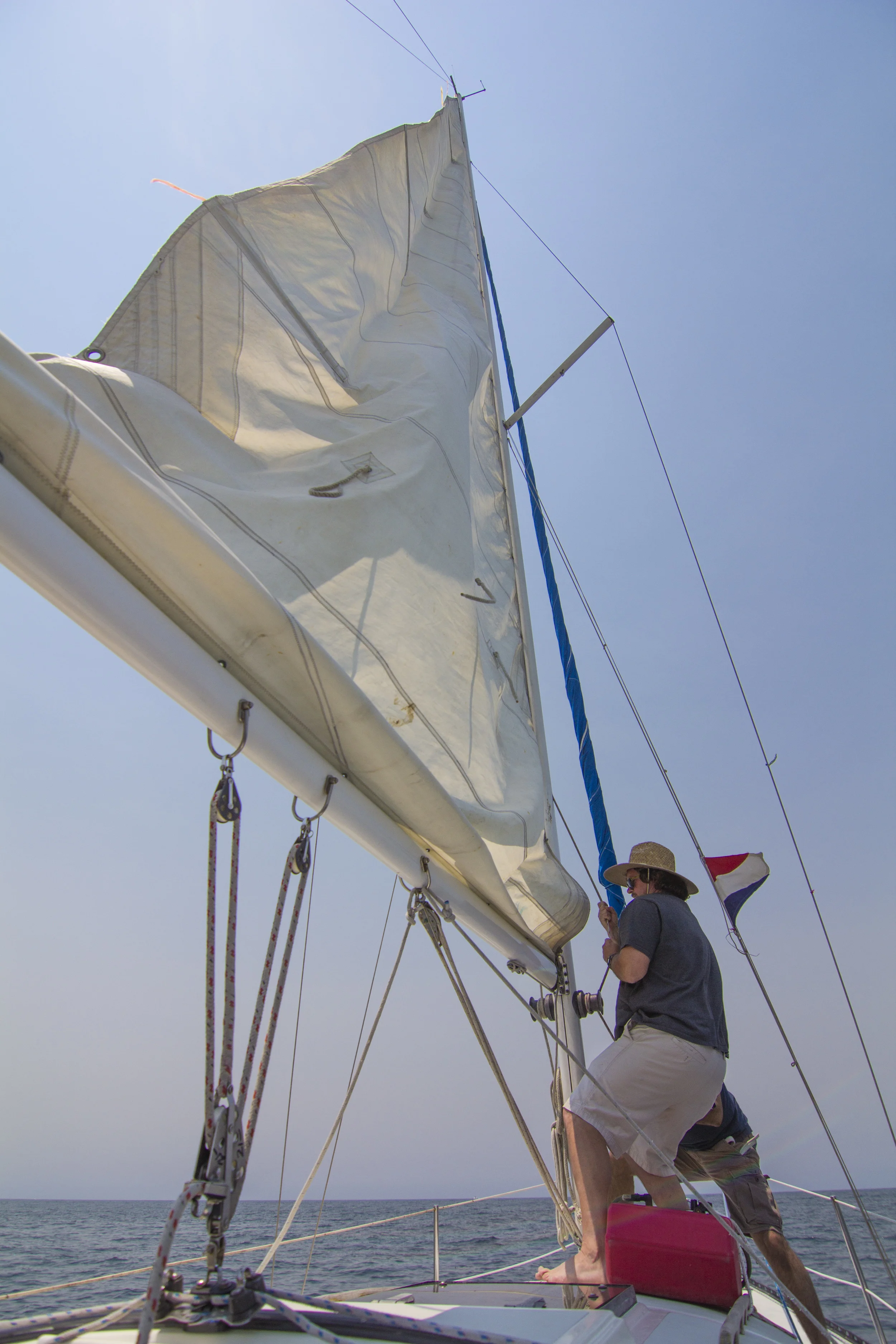 The winds were not super strong most of the trip so we spent a lot of time assisting our sails with our motor in order to make good time to the island. But when the winds were good, the boat got a nice solid lean, and the wind felt fantastic.