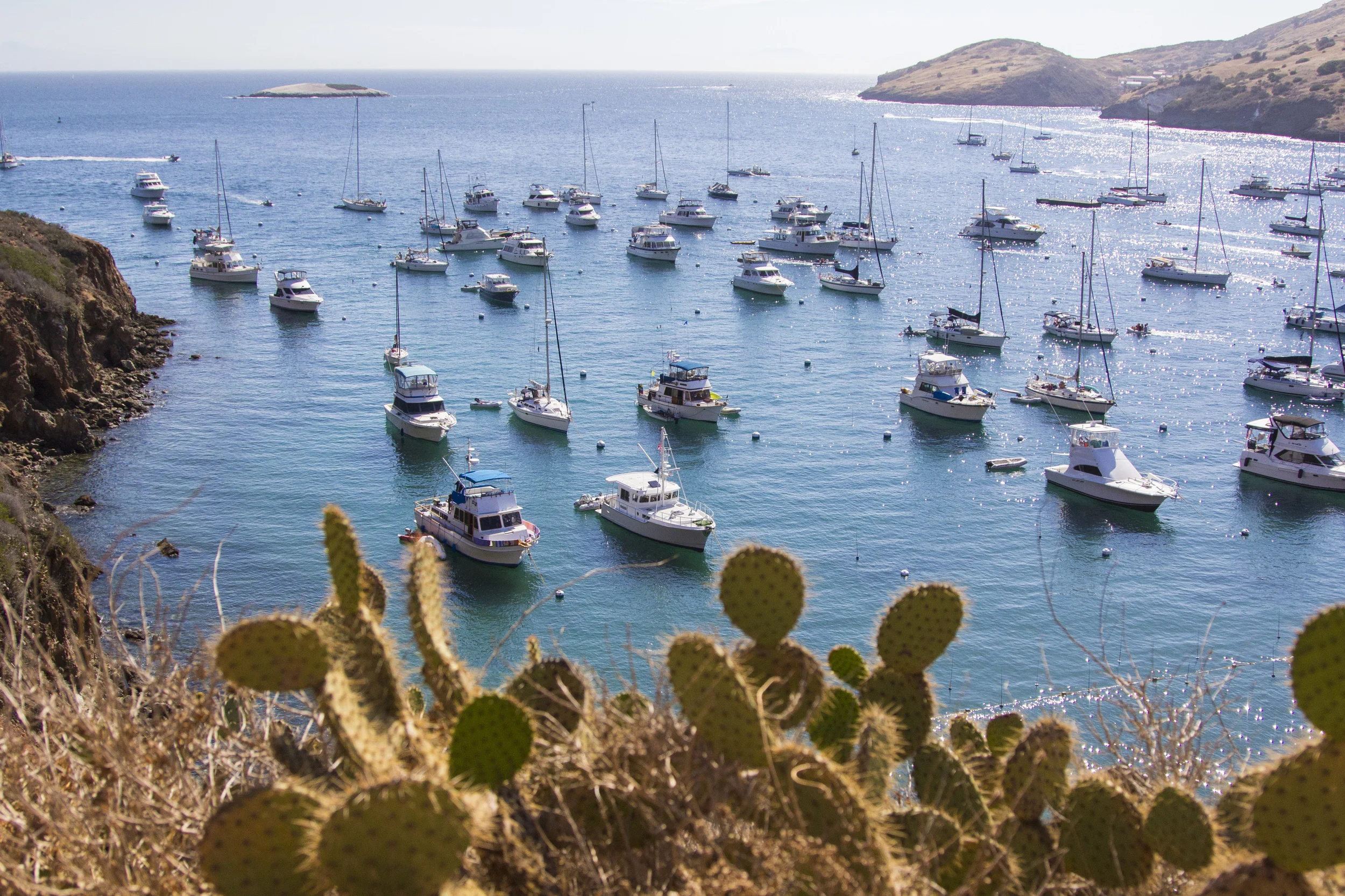 It was a foggy morning so Catalina Island was no where to be seen until we were right upon it. On a clear day you can see it from Marina Del Rey. There are 3 popular anchorages on Catalina: Isthmus, Cat Harbor, and Avalon and we opted to stay in Cat Harbor which is the most protected anchorage on the Island... meaning we could expect calmer nights on the boat from wind and current protection. In fact, Cat Harbor is noted by the U.S. Coastguard as 1 of the 2 year-round safe harbors in all of Southern California.