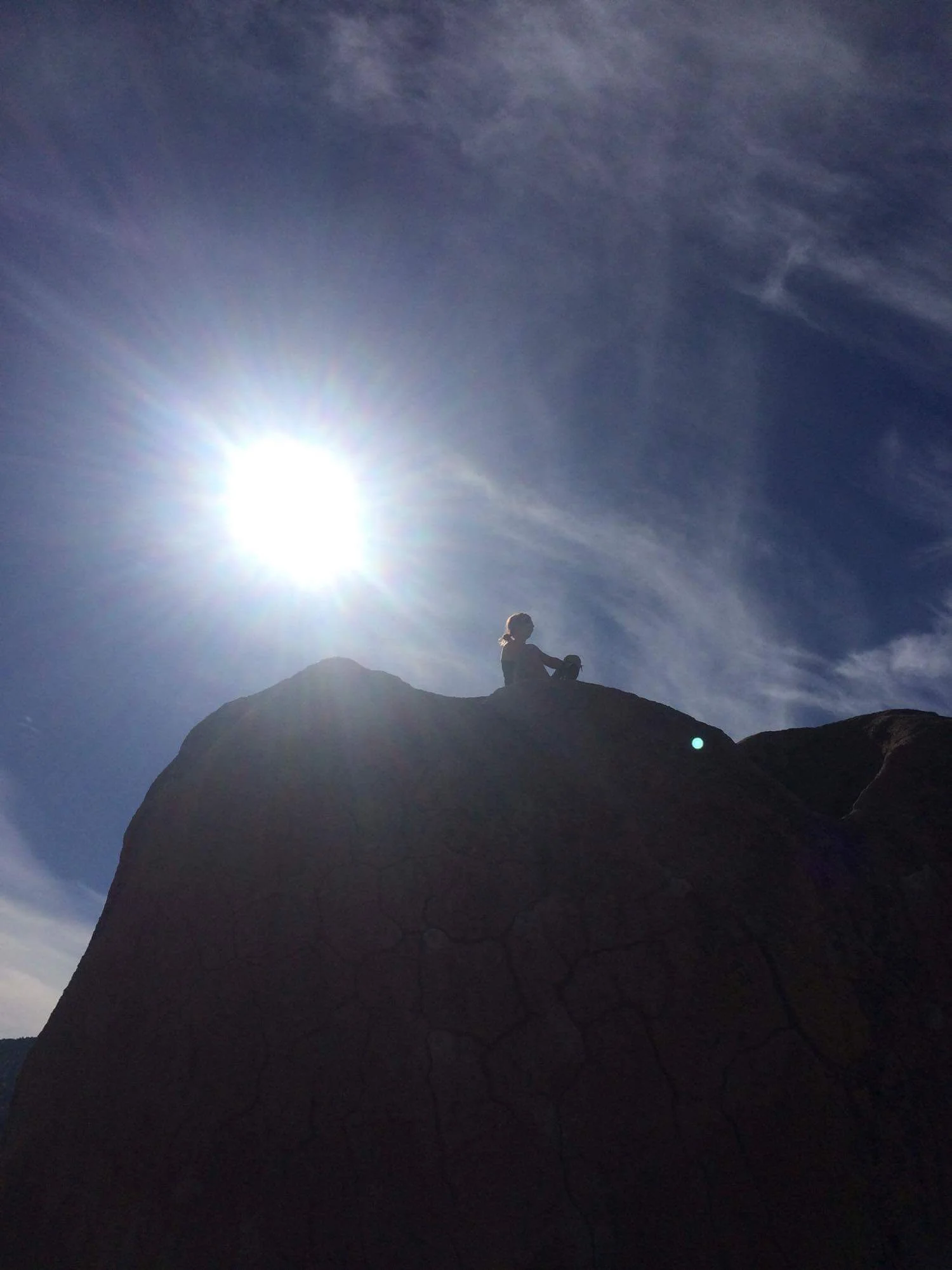 This slabby V0- is a great introduction into highball bouldering in Bishop. It's not as well known as its neighbor (V1 climb to the left called Heavenly Path), but I think it is great for warmup and testing out your nerves on highball boulder problems. All the holds are there, just take your time and breathe. As an added plus, the down climb is easy on the backside of this boulder. This is my go-to boulder for warming up for my project, Solarium V4, which is only a few feet away.