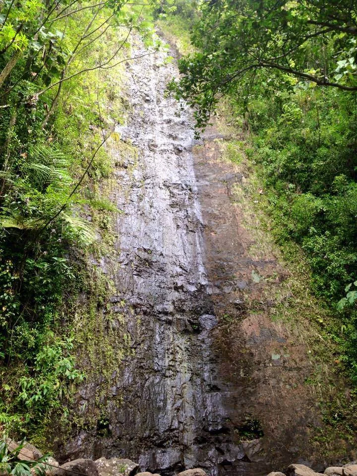 Another beautiful waterfall hike in Oahu the trail leading to Waimea Falls. You can find this hike on the North Shore of Oahu. This gorgeous hike follows alongside a small creek running from the waterfall all the way down to Waimea Bay. The entire trail is paved.