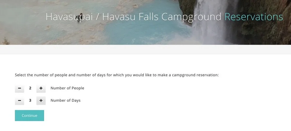 YOU MUST APPLY FOR YOUR HAVASUPAI FALLS CAMPING RESERVATION ONLINE! This is the only method to apply for permits for the Havasu Fall hike. You used to be able to also call and get reservations, but now it’s all done online.