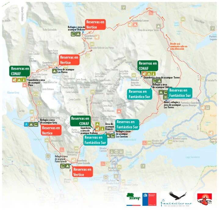 Fantastico Sur is a private company which is in charge of the Frances, Cuernos, Torres Central and El Chileno camp sites.