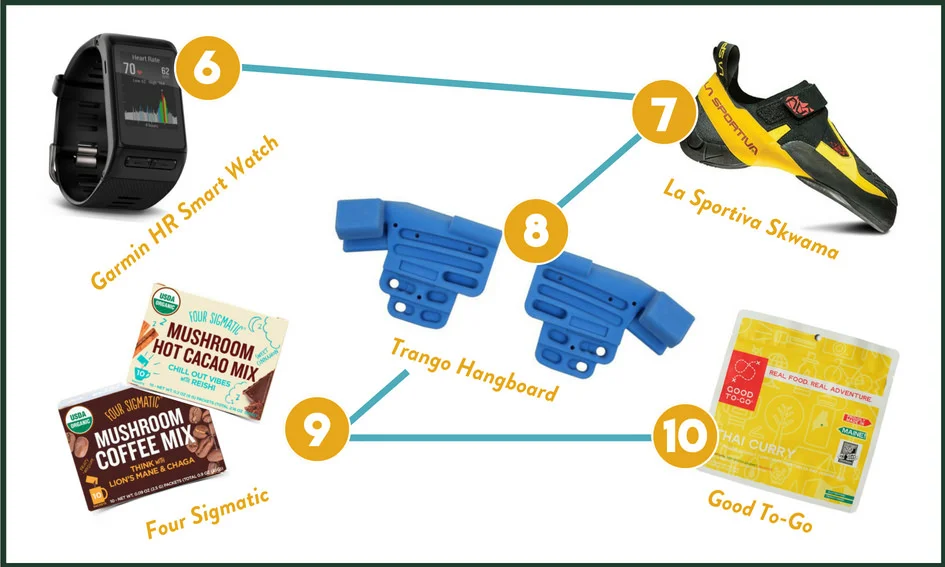8) Trango Rock Prodigy Training Center: Love this hangboard. Has some great options, and may I love it even more because we built this sweet corner build out to go with it, complete with pulley system to take some weight off of harder finger holds.